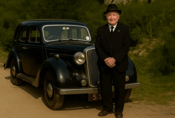 This photo captures a fleeting moment of calm before the storm. The sun is shining and the car is running, but the “Model Occupation” was a facade. Within a few years, the Wolseley would likely be confiscated or scrapped, the soldiers would be digging concrete bunkers, and the civilian driver would be struggling to find enough calories to survive the winter.